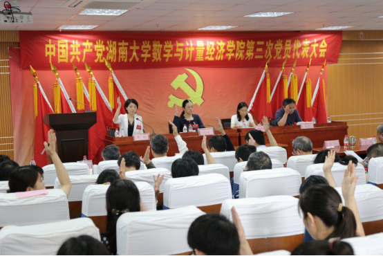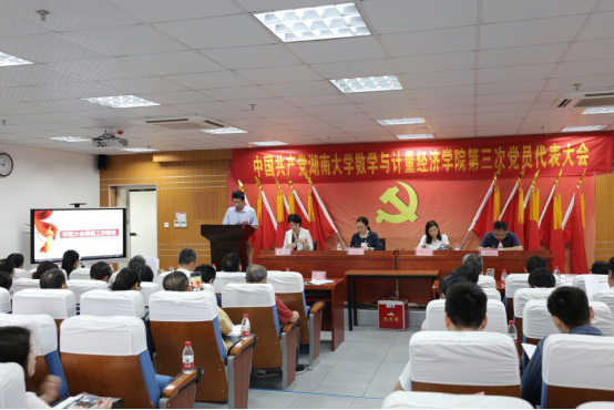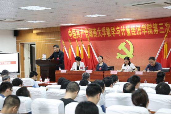 数学与计量经济学院第三次代表大会在数学院207报告厅隆重召开。大会主题是:高举中国特色社会主义伟大旗帜,以习近平新时代中国特色社会主义思想为指导,深入贯彻党的十九大和学校第九次党代会精神,带领学院共产党员和全体师生员工,不忘育人初心,牢记时代使命,充分把握“双一流”建设的大好机遇,团结协作,攻坚克难,为建设国内一流的数学学科而努力奋斗。大会由数学与计量经济学院党委副书记熊雅同志主持,中共德州扑克