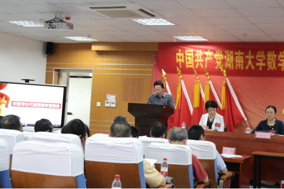 数学与计量经济学院第二届委员会作题为《不忘育人初心,牢记时代使命,团结协作,攻坚克难,努力建设国内一流数学学科》的工作报告。在报告中,程卓蕾同志对过去七年工作进行了回顾和总结,提出了未来四年发展思路和工作目标,呼吁全体党员干部和师生员工继续牢记使命,凝聚新时代数学人的精、气、神、团结协作,为创建国内一流的数学学科不断努力奋斗,为学校争创“双一流”做出新的贡献。大会还以书面形式审议通过了《党费收缴、管理和使用情况的报告》、《大会选举办法》。在主持人宣读了两个委员会候选人名单之后,61位党代表正式进行投票选举。