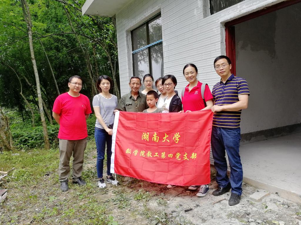 为庆祝党的生日,提升党员奉献自我,服务社会的意识与能力,201971日,数学与计量经济学院党委组织4教工党支部党员赴湖南邵阳市隆回县白水洞村开展结对帮扶工作。学院党委书记程卓蕾、党委副书记熊雅、副院长易学军、党办主任胡蕾、各教工支部书记及支部党员19人参与此次活动。学校定点扶贫工作办公室副主任康添慧及白水洞村村干部全程陪同学院党委开展结对帮扶工作。