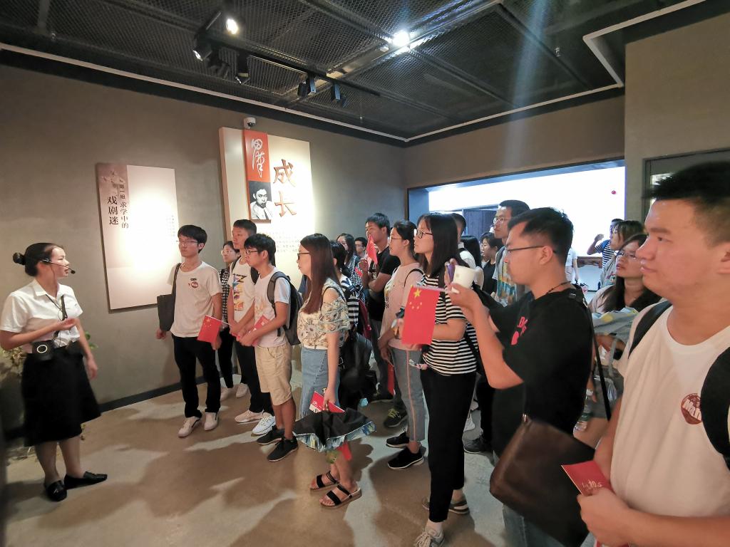 在广场周围有很多少先队员也在参观学习,一起唱歌,为祖国母亲庆生。而后到了田汉故居,大家自行参观了故居的各个房间,了解了田汉先生的生前历史,看到摆放的家具和介绍,仿佛田汉先生生活的场景又浮现在我们面前。
