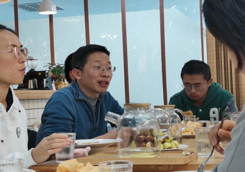 老师和同学们一边享受着美食,一边愉快的交谈着。接下来,雷老师又根据他多年的教学经验,向学委们指出宿舍文化对于学习意识的重要性。通常来说,保研的学生是以宿舍为单位的,这和平时的学习氛围密不可分。宿舍里一个同学玩游戏,可能会造成整个宿舍的懈怠。而如果舍友一起去自习,宿舍里就会形成良好的学习文化,这样的学习氛围才是理想的。作为学习委员,应当“挽救”玩游戏的同学,引导他们认真学习。