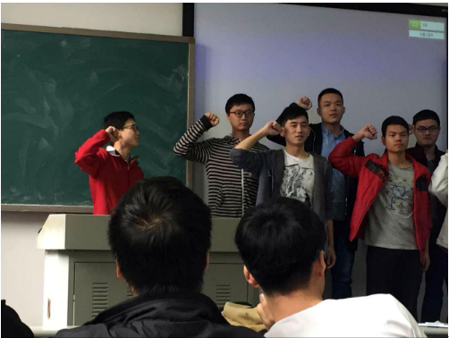 首先由团支书何琛同学代表年级对同学们进行了总书记思想的普及,要求每位共青团员要维护习近平总书记的核心地位,更加自觉地向习近平总书记学习和看齐,更加坚定地维护党中央权威。