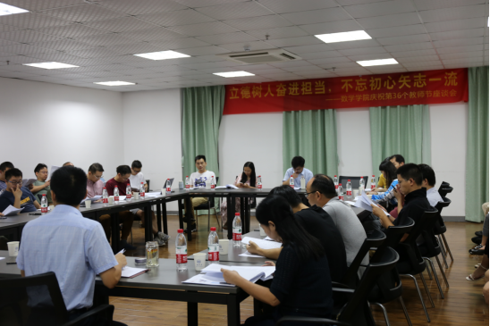 蒋月评书记在总结讲话时向全院教职员工再次致以节日祝贺。他指出今年的教师节座谈会办得很好,让大家可以坐下来加强交流、分享感受,有效的减少了信息不对称造成的误解。他强调,教学是良心活,数学老师承担了全校基础课的教学,希望老师们投入更多的精力。