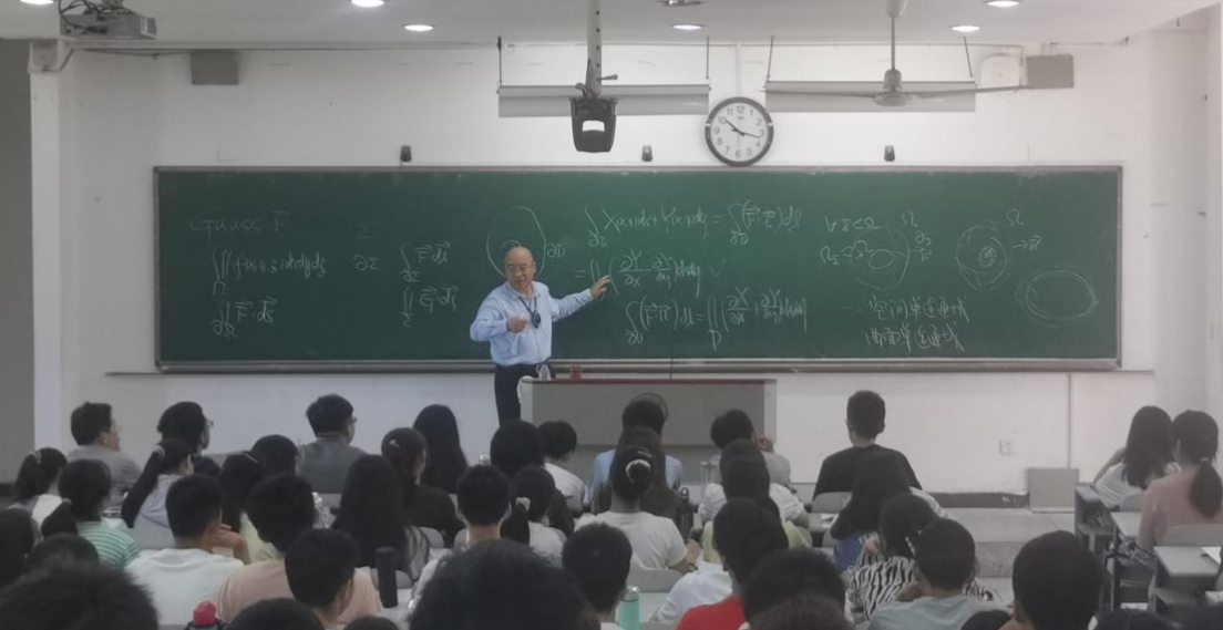 教室上课,但并不让人觉得陌生。上课铃声响起,扈老师在简要的自我介绍后直接切入授课内容。他从通俗易懂的物理背景引入高斯公式和斯托克斯公式,极大地激发学生的求知欲。授课过程中,扈老师声音洪亮、逻辑清晰、讲授娴熟、全程板书,师生听得津津有味,不知不觉,下课铃声响起。