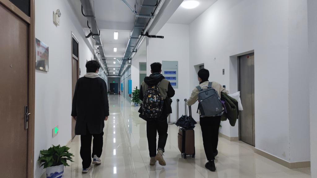 104位红码同学要去酒店隔离,需要一位带队老师,谁去?”“我去!”张屾没来得及细想就答应了。凌晨,他简单收拾东西,带着104位同学抵达酒店。