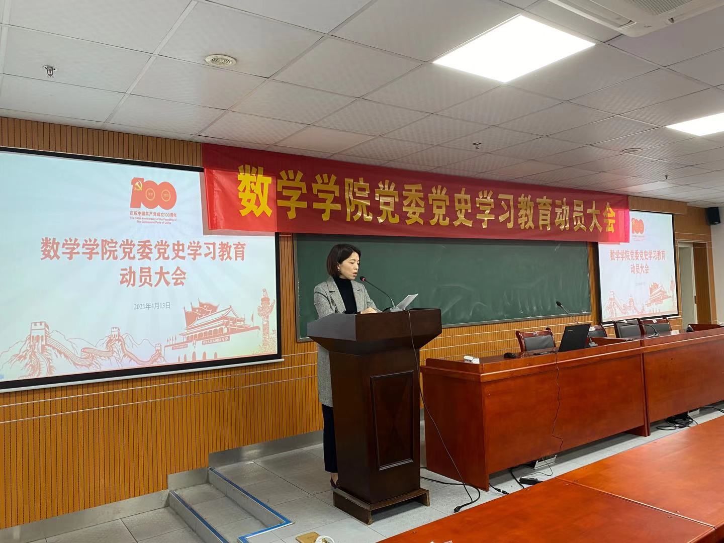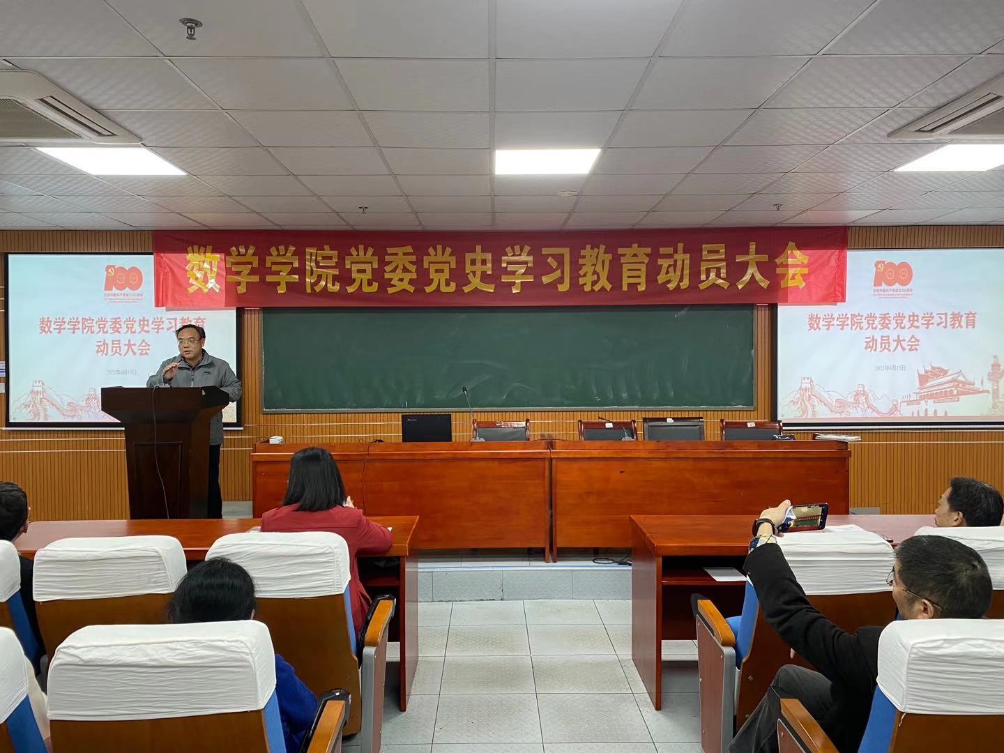 会议第一阶段,党委书记蒋月评同志作动员讲话。他从“为什么开展党史学习教育?”、“党史学习教育的学习重点和学习目标是什么?”、“如何使党史学习教育务求实效?”进行详细阐述,希望大家以极高的政治自觉迅速把思想和行动统一到党中央的重大决策部署上来,立足实际、守正创新,高标准高质量完成学习教育各项任务,从党的光辉历史中汲取砥砺奋进的精神力量,为把德州扑克 数学学科建设为在国内外数学界具有重要影响的人才培养基地和学术研究基地而贡献力量。
